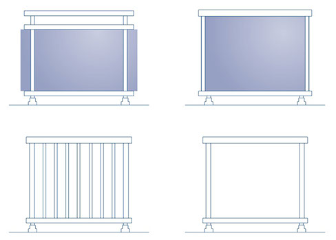 • Montagem de vidros com bites de pressão. • Juntas de estanquidade em EPDM com cantos vulcanizados para junta central.